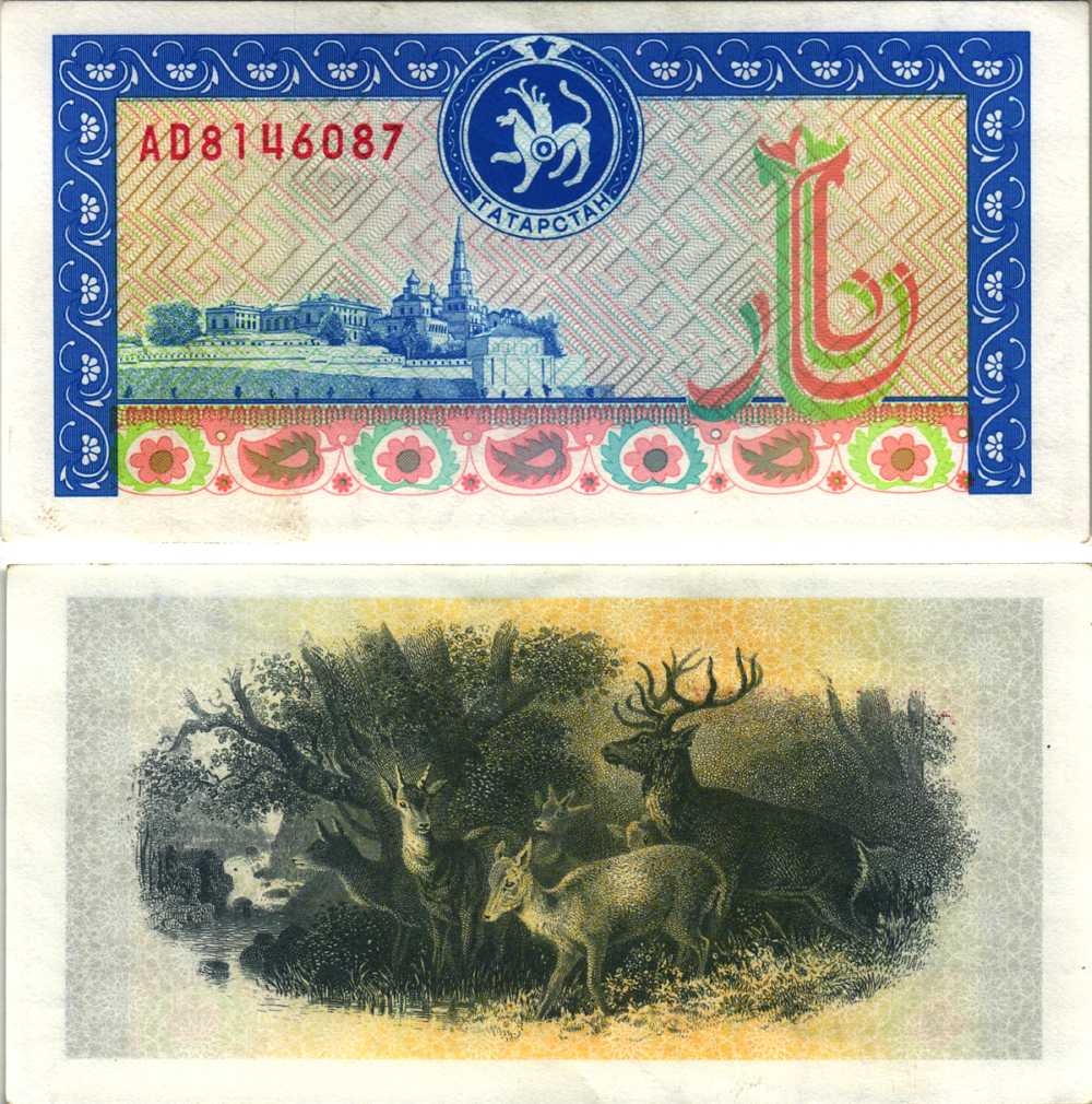 ТАТАРСТАН 1000 РУБЛЕЙ 1995 ГОЛУБАЯ, ОЛЕНИ Pick 11, Сергеев 14 бумага аUNC 000-00-00