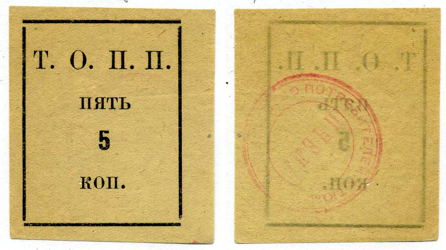 Тюмень 5 Копеек ND Тюменское Общество Потребителей «Пчела» (Т.О.П.П.), печать на реверсе синяя Рябченко 20852р бумага 438-30-3-3