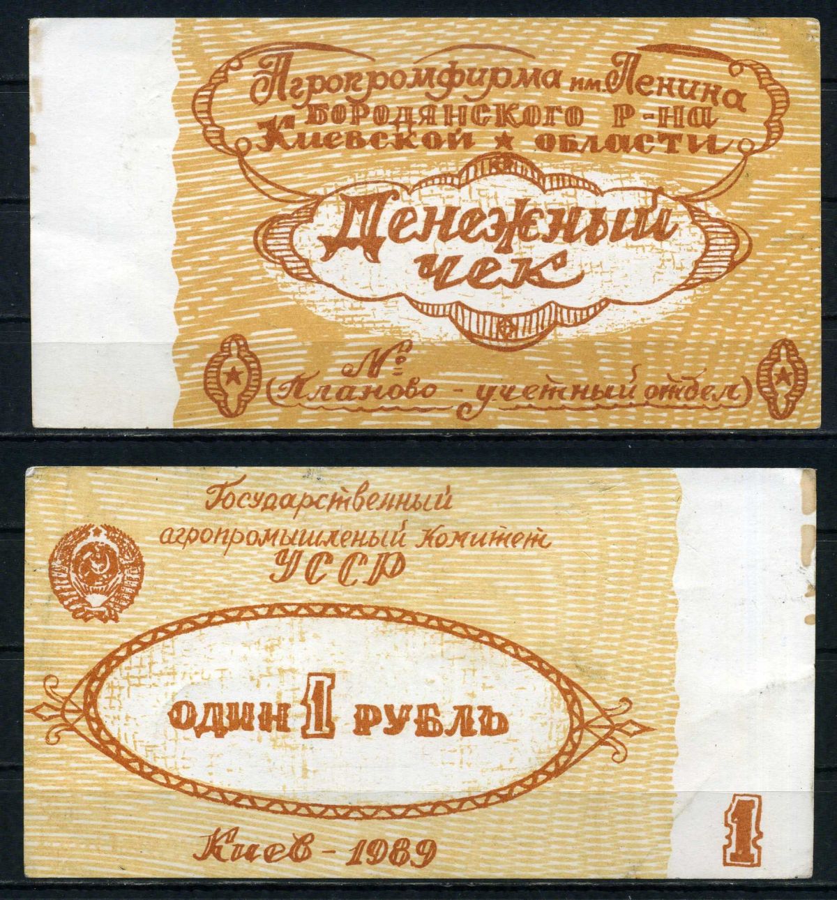 Государственный агропромышленный комитет УССР 1 рубль 1989 Агропромфирма им. Ленина Бородянского района Киевской области бумага aUNC 00-00