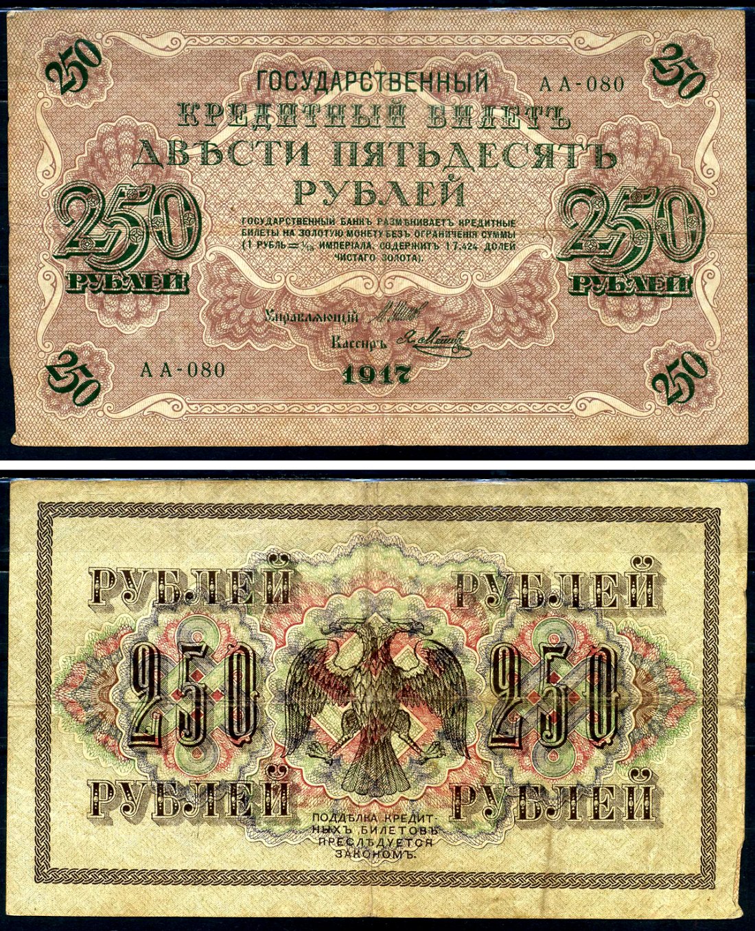 Россия 250 рублей 1917 Советский выпуск, Государственный кредитный билет, управляющий Шиповым кассир Федулеев АВ Горянов 1.22.2 бумага 2194-20-2-2