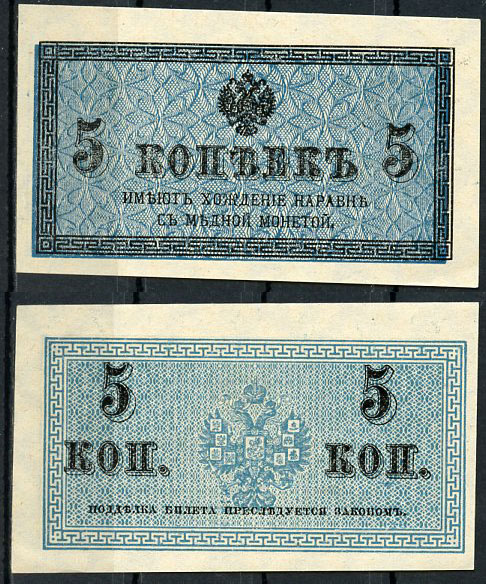 Россия 5 копеек ND (1915) казначейский знак, водяной знак №1 (уголки) ZG-II № 1.20.4, Pick 27 бумага aUNC 438-61-1-2