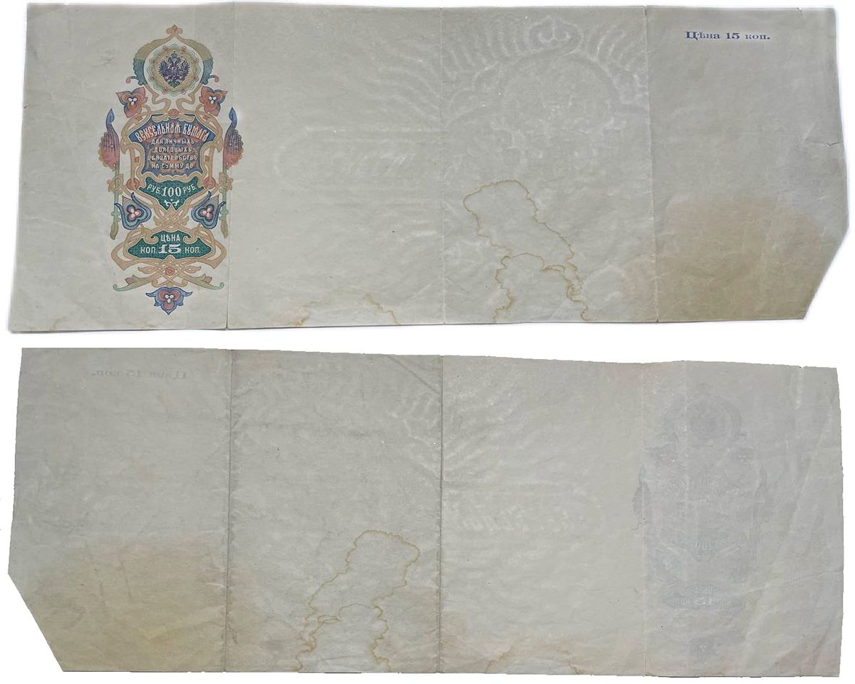 Россия вексельная бумага (вексель) на сумму до 100 рублей 1910 цена 15 копеек, незаполненный бланк бумага 6207-4-1-2