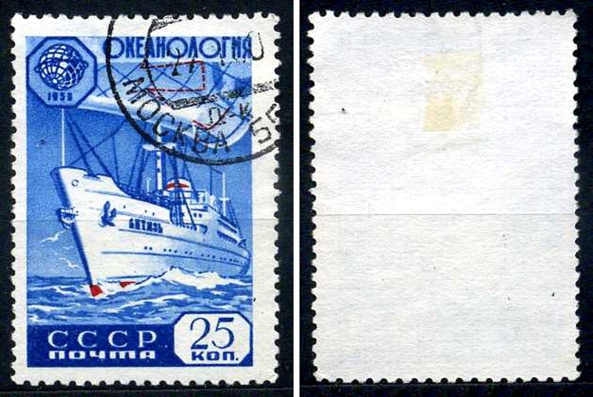 СССР марка 25 копеек 1959 Международное геофизическое сотрудничество - океанология Загорский 2268 почтовое гашение 8699-6-1-2