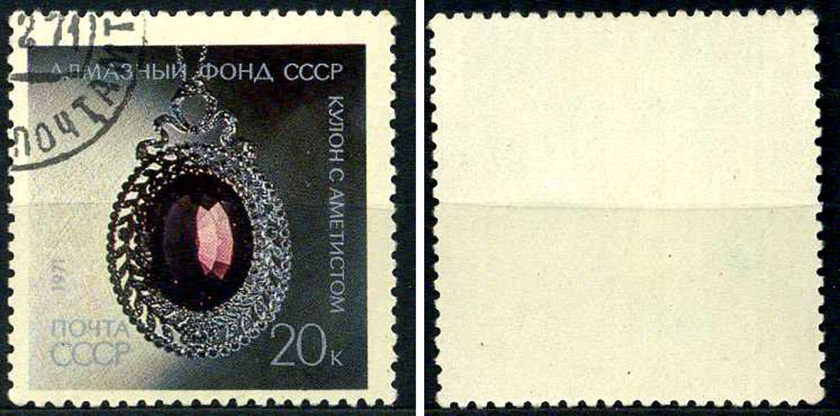 СССР марка 20 копеек 1971 Алмазный фонд СССР - купон с аметистом Загорский 4002 почтовое гашение 8699-15-6-1