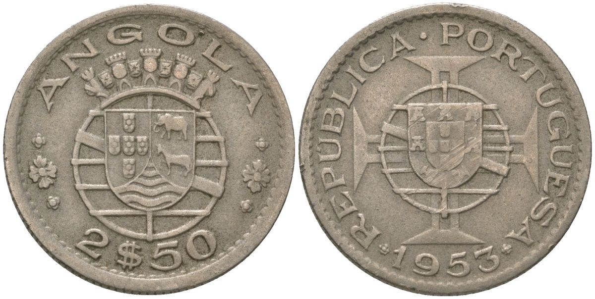 Ангола 2 1/2 эскудо 1953 KM 77 медно-никель 4621-648