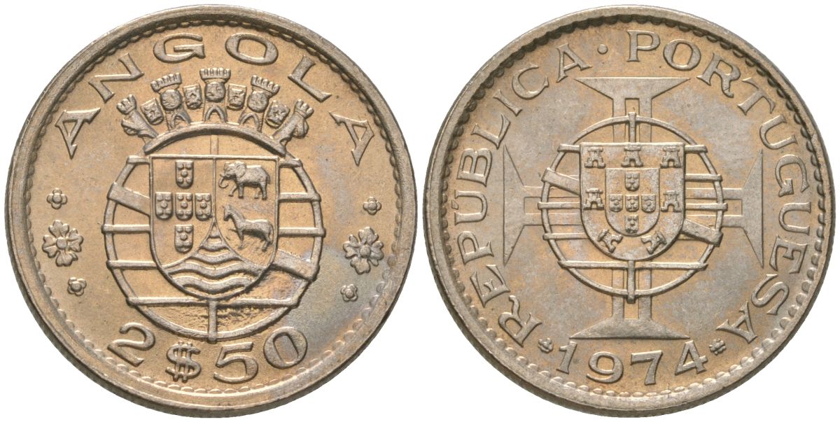 Ангола 2 1/2 эскудо 1974 KM 77 медно-никель UNC 4621-654