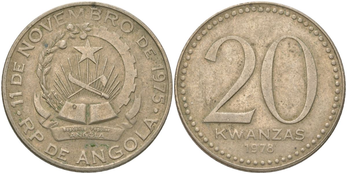 Ангола 20 кванз 1978 KM 87 медно-никель 4620-726