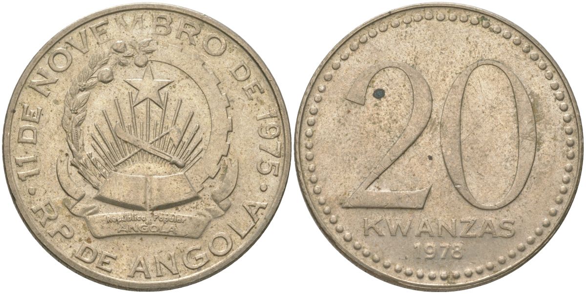 Ангола 20 кванз 1978 KM 87 медно-никель 4620-727