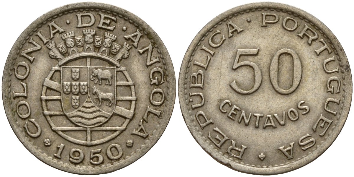 Ангола 50 сентаво 1950 300 лет революции 1648 года KM 72 никель бронза 4121-1216
