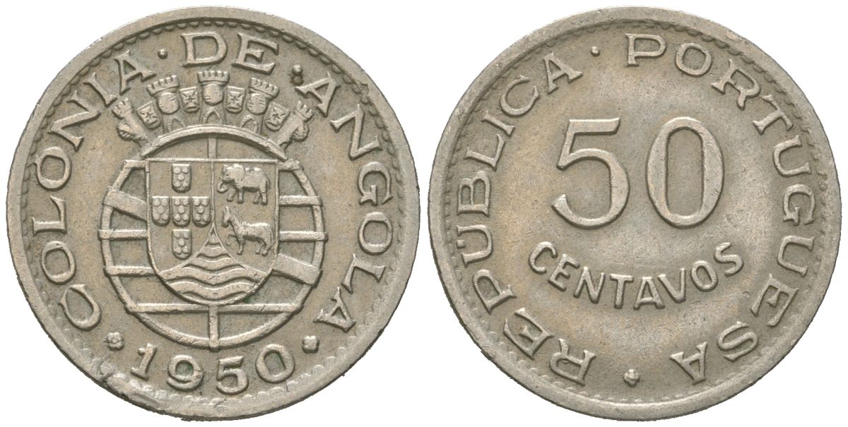 Ангола 50 сентаво 1950 300 лет революции 1648 года KM 72 никель бронза 4619-325