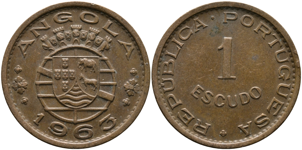 Португальская Ангола 1 эскудо 1963 KM 76 бронза 33-921