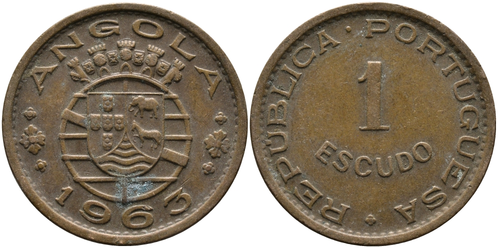 Португальская Ангола 1 эскудо 1963 KM 76 бронза 33-925