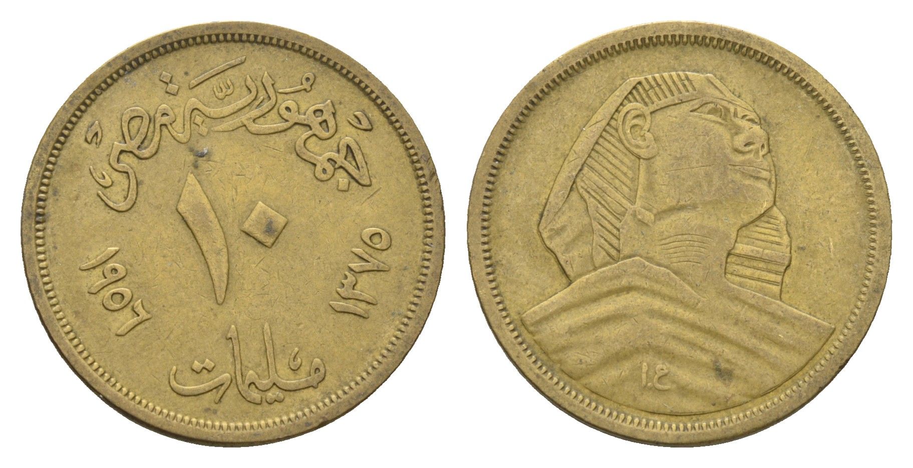 Египет 10 миллим 1956 KM 381 алюминиевая бронза 4660-1226