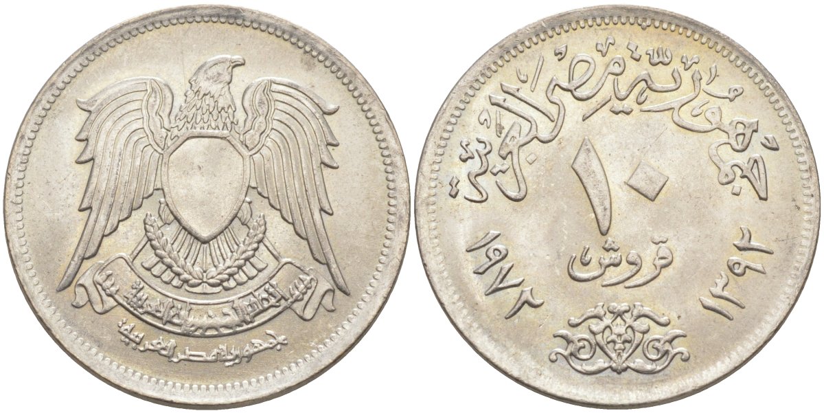 Египет 10 пиастров 1972 АН1392, АРАБСКАЯ Республика (1972-), ИСЛАМСКИЙ СОКОЛ KM 430 медно-никель UNC 69-542