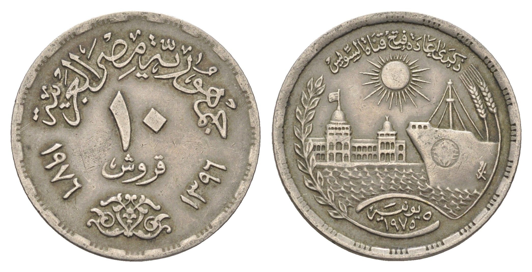 Египет 10 пиастров 1976 Переоткрытие Суэцкого канала KM 452 медно-никель 4662-133