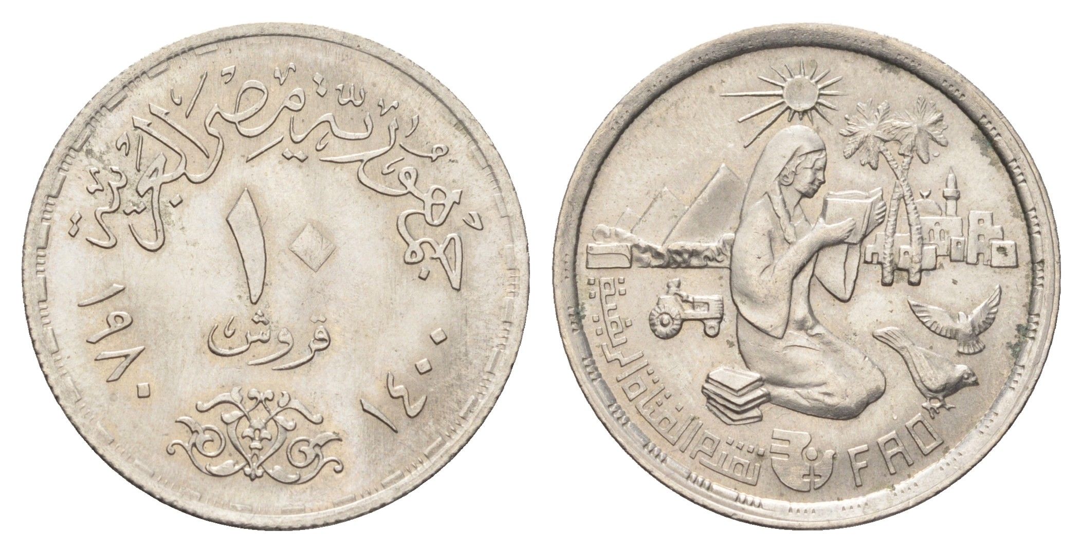 Египет 10 пиастров 1980 Продовольственная программа - ФАО KM 505 медно-никель UNC 4662-115