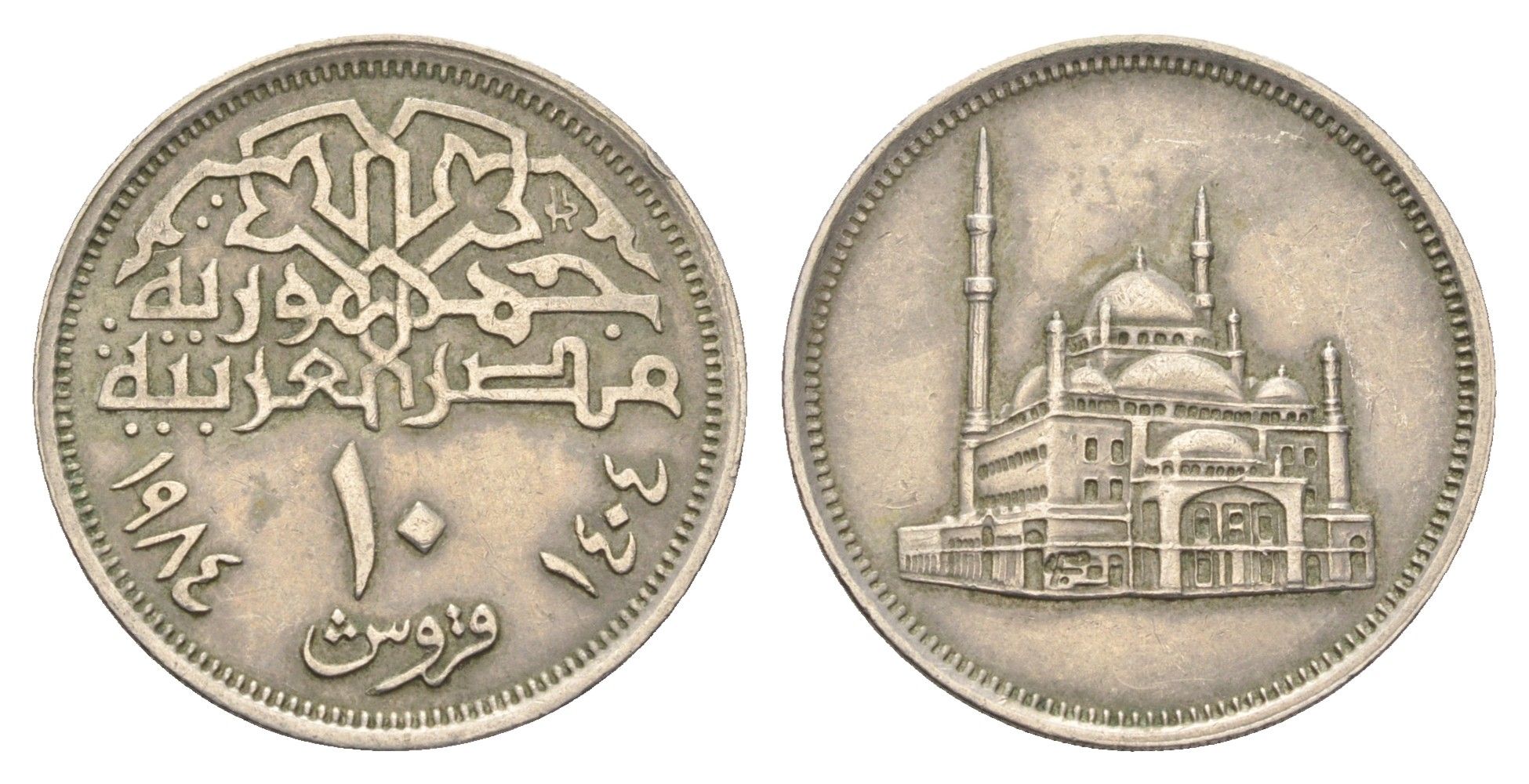 Египет 10 пиастров 1984 Мечеть Мухаммеда Али KM 556 медно-никель 4662-147