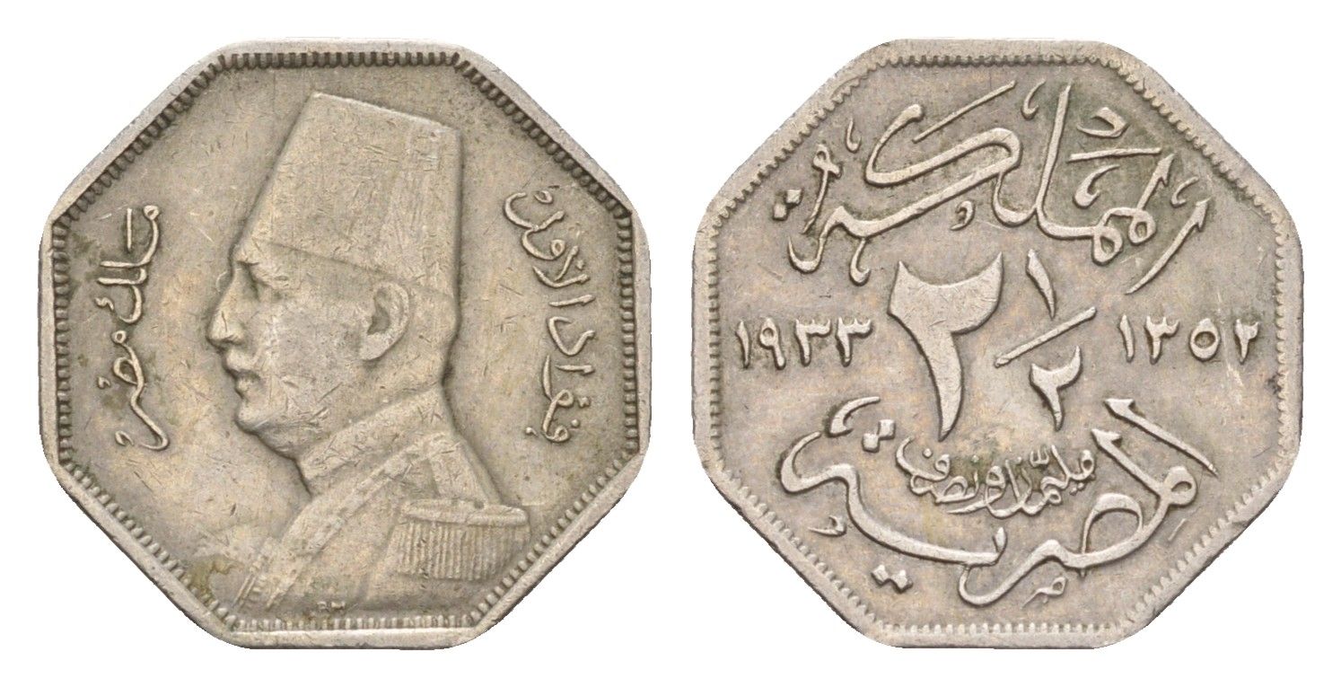Египет 2 1/2 миллима 1933 AH 1352, год-тип, Фуад I (1917-1936) KM 356 медно-никель 4674-148