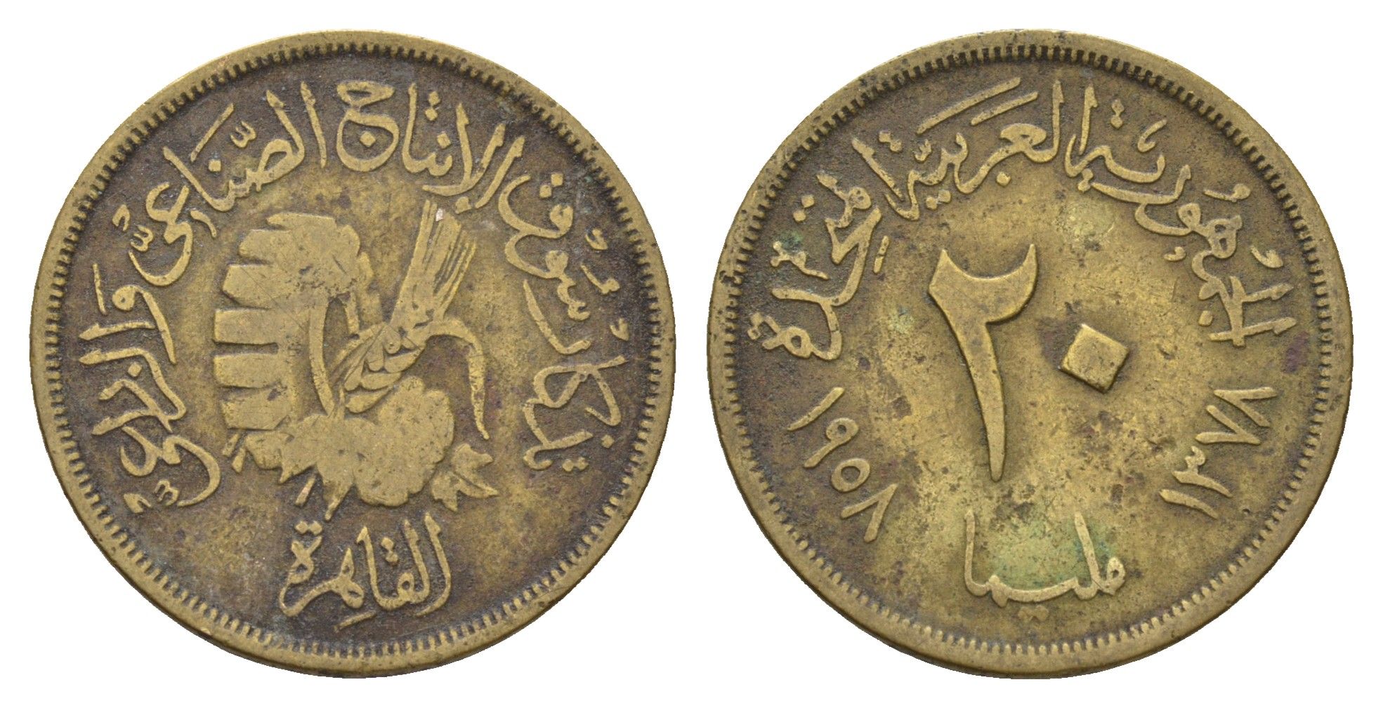 Египет 20 миллим 1958 Каирская сельскохозяйственная и промышленная ярмарка KM 390 алюминиевая бронза 4673-656