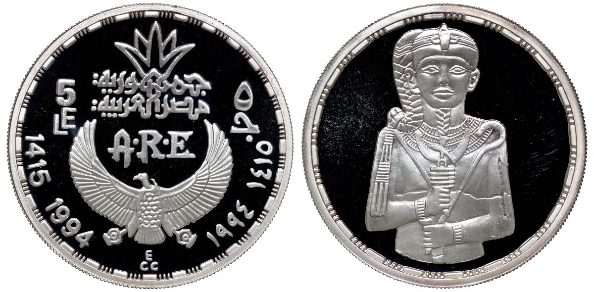 Египет 5 фунтов 1994 бог луны Хонсу KM 751 серебро PROOF 04-269-23