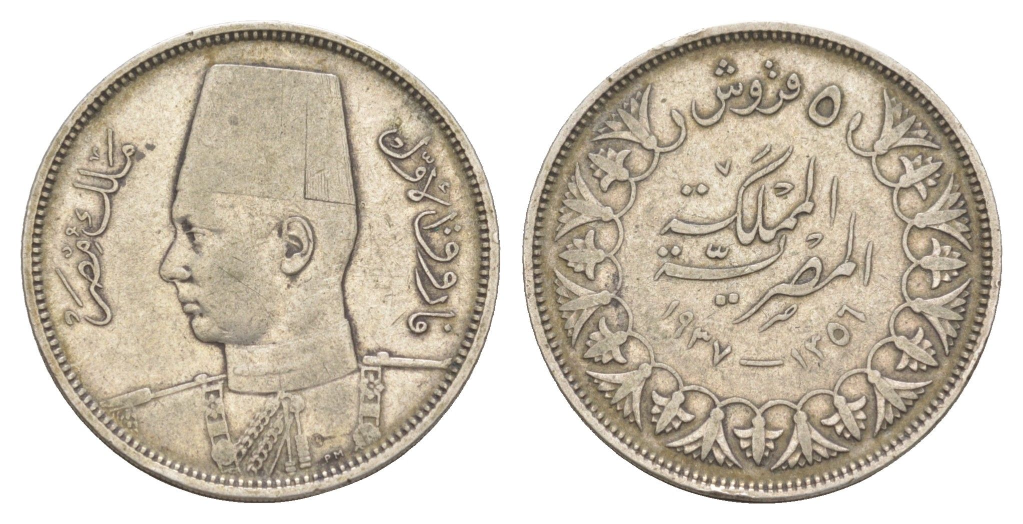 Египет 5 пиастров 1937 KM 366 серебро 4153-1052