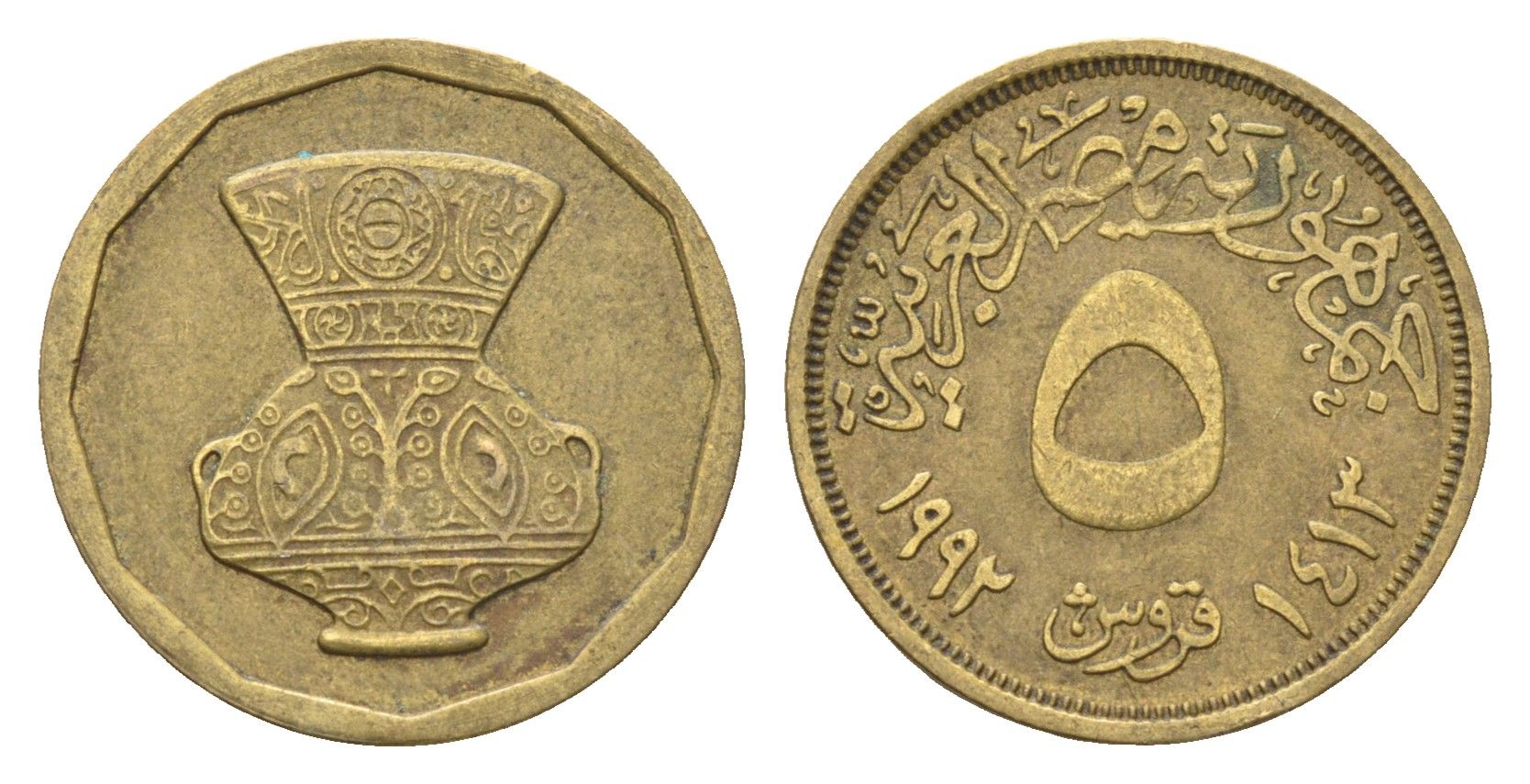 Египет 5 пиастров 1992 KM 731 латунь 4674-267