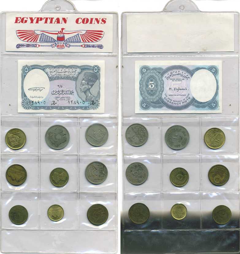 Египет набор из 9 монет и банкноты ND монеты из обращения, в запайке, для туристов 8-1-05-12