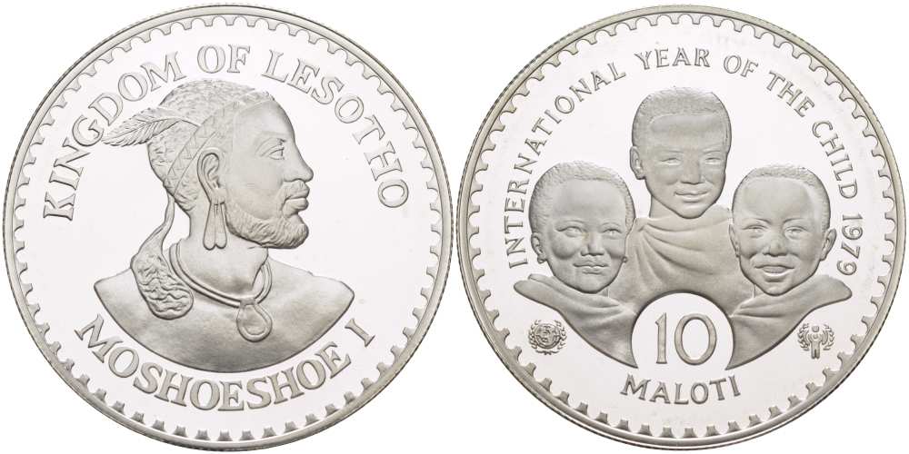 Лесото 10 малоти 1979 (1981) международный год защиты детей, Мошвешве I KM 24 серебро PROOF 00-00