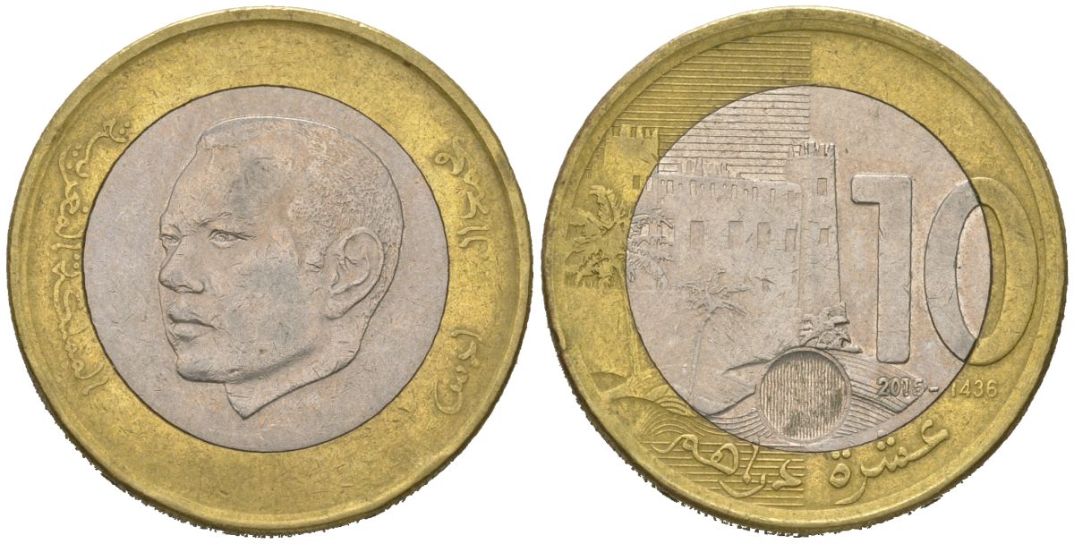 Марокко 10 дирхамов 2015 AH 1436, Мохаммед VI (1999-) Y 141 биметалл 4619-522