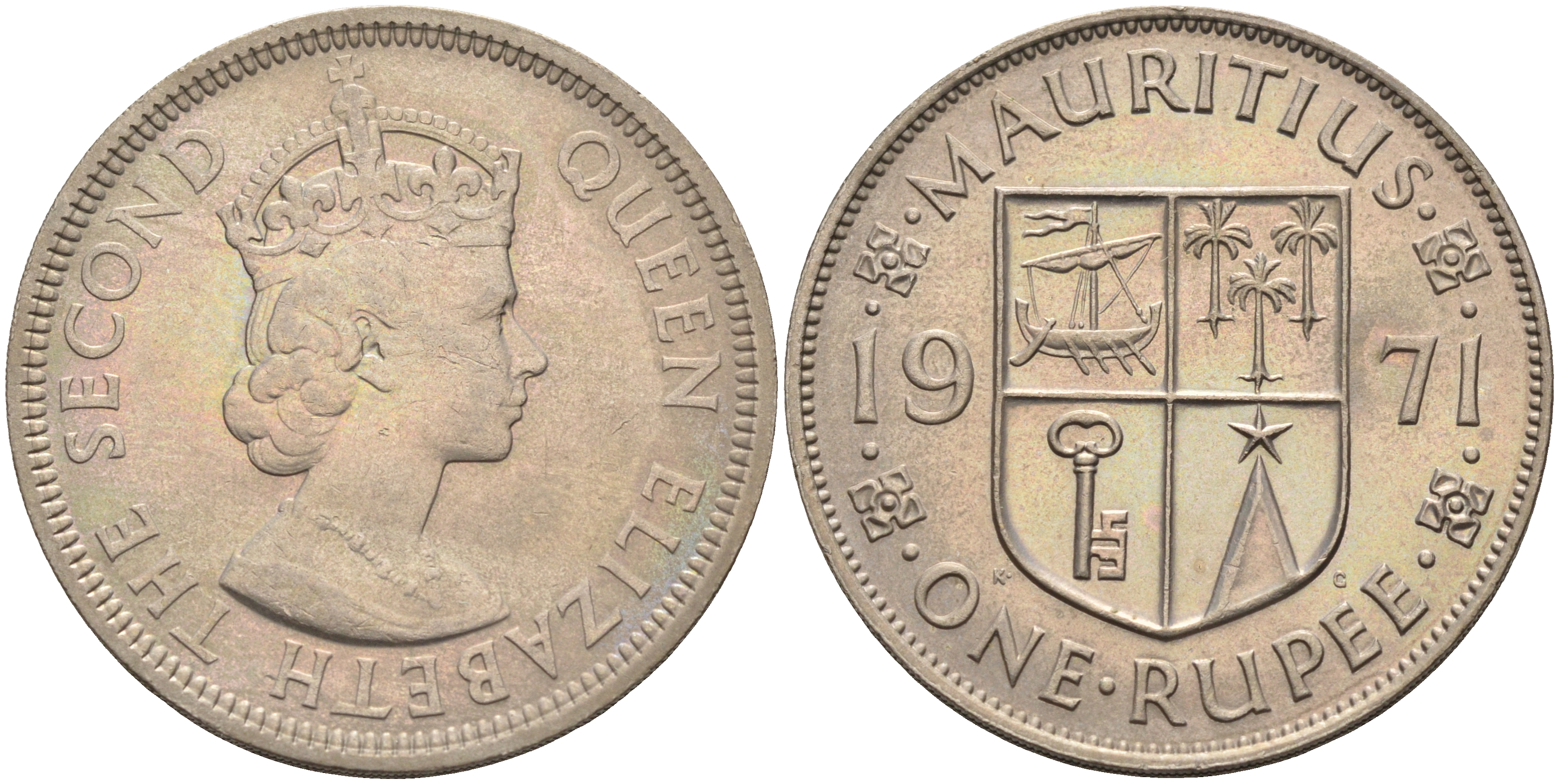 МАВРИКИЙ 1 РУПИЯ 1971 ЕЛИЗАВЕТА II KM 35.1 медно-никель 4367-1213