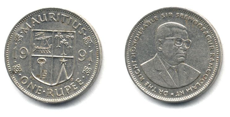 Маврикий 1 рупия 1991 Сивусагур Рамгулам KM 55 медно-никель 25-957