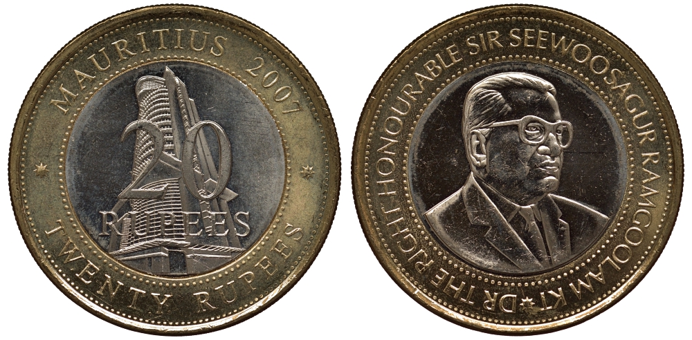 Маврикий 20 рупий 2007 40 лет Центральному банку Маврикия KM 66 биметалл UNC M22-09