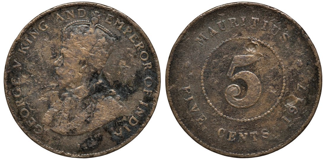Маврикий 5 центов 1917 Георг V (1910-1936) KM 14 бронза 4391-312