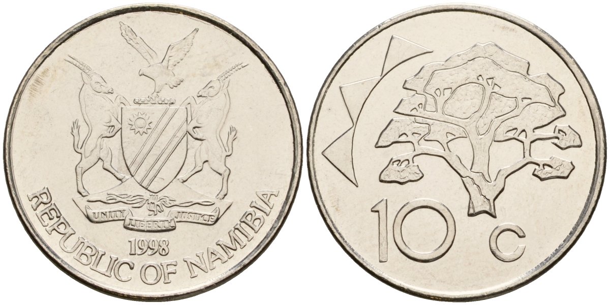 Намибия 10 центов 1998 KM 2 сталь плакированная никелем 4591-613