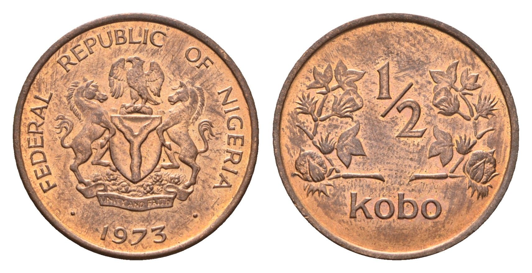 Нигерия 1/2 кобо 1973 год-тип KM 7 бронза UNC 206-334