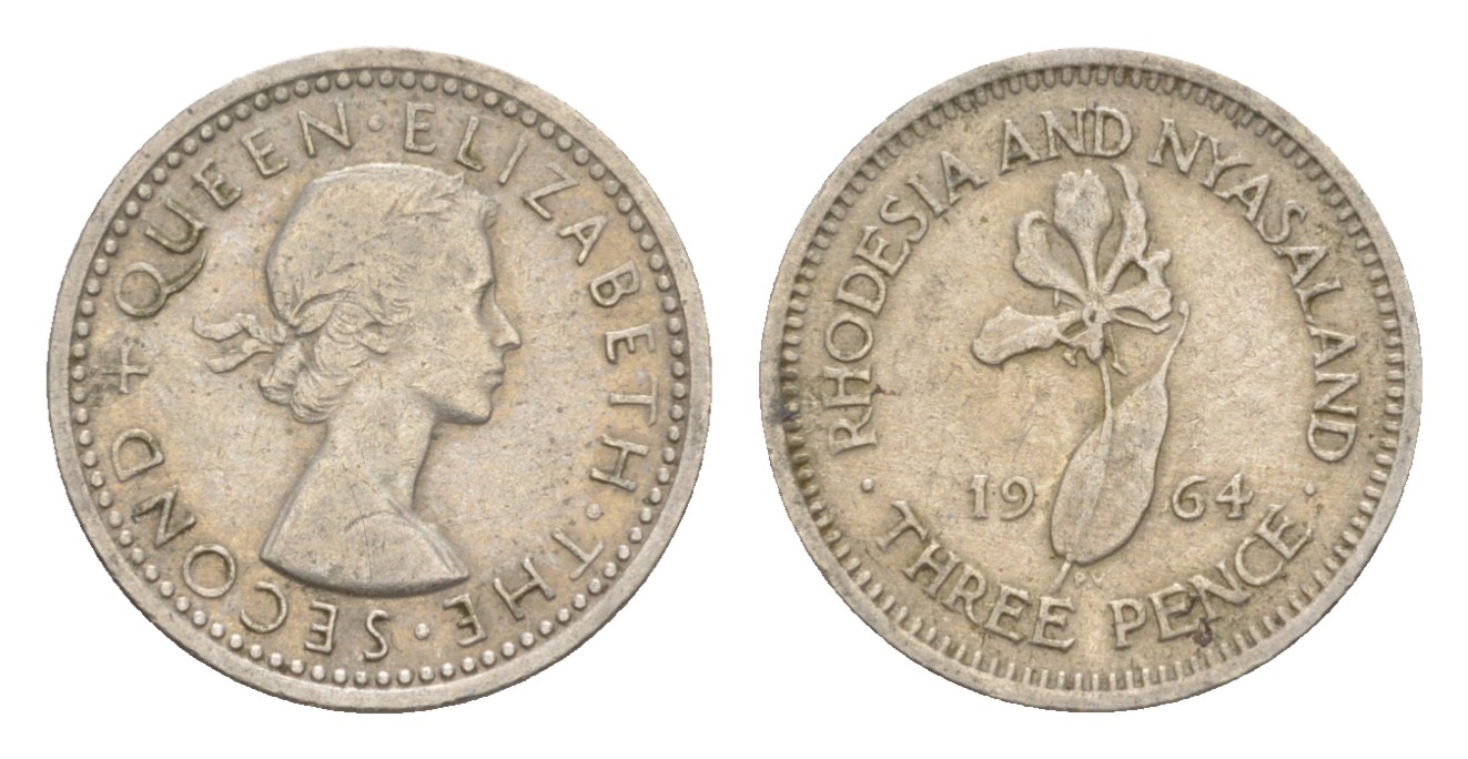 Родезия и Ньясаленд 3 пенса 1964 Елизавета II (1952-2022), цветок глориоза KM 3 медно-никель 4640-931