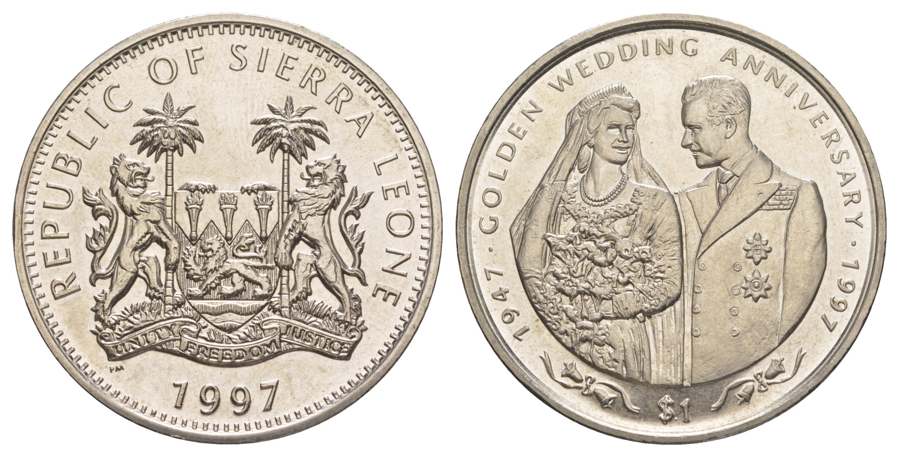 Сьерра-Леоне 1 доллар 1997 Золотая годовщина свадьбы – День свадьбы королевской пары KM 59 медно-никель BU 1521-1221