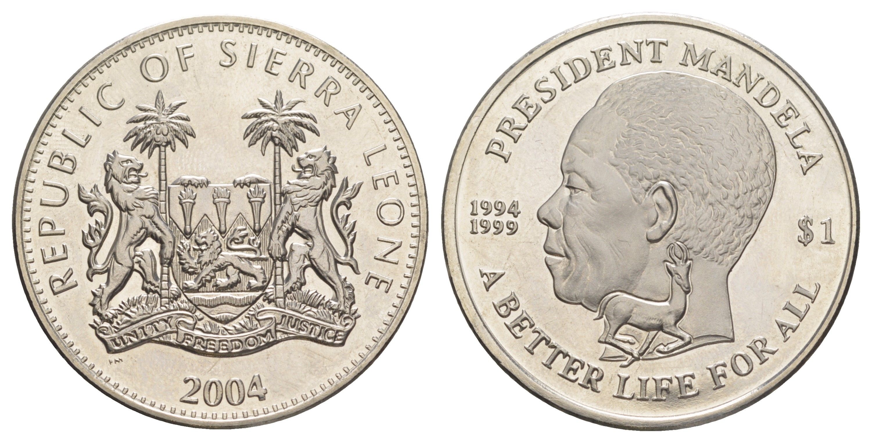Сьерра-Леоне 1 доллар 2004 Нельсон Мандела KM 297 медно-никель BU 1531-1332