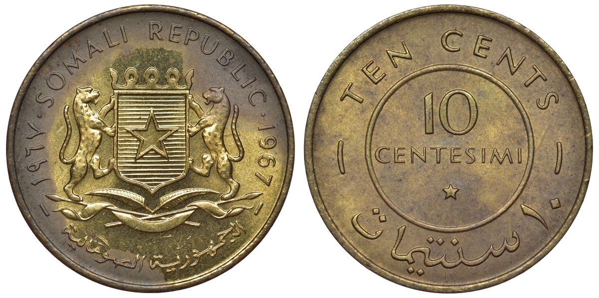 Сомали 10 чентезимо 1967 КМ 7 латунь aUNC 4118-752