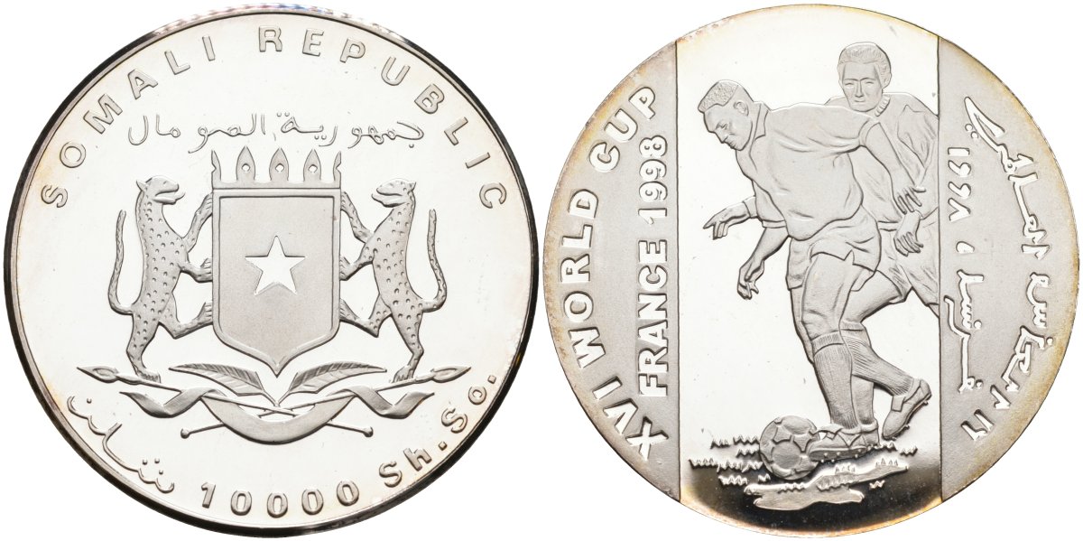 Сомали 10000 шиллингов 1998 чемпионат мира по футболу во Франции 1998 года серебро PROOF 11-321-42