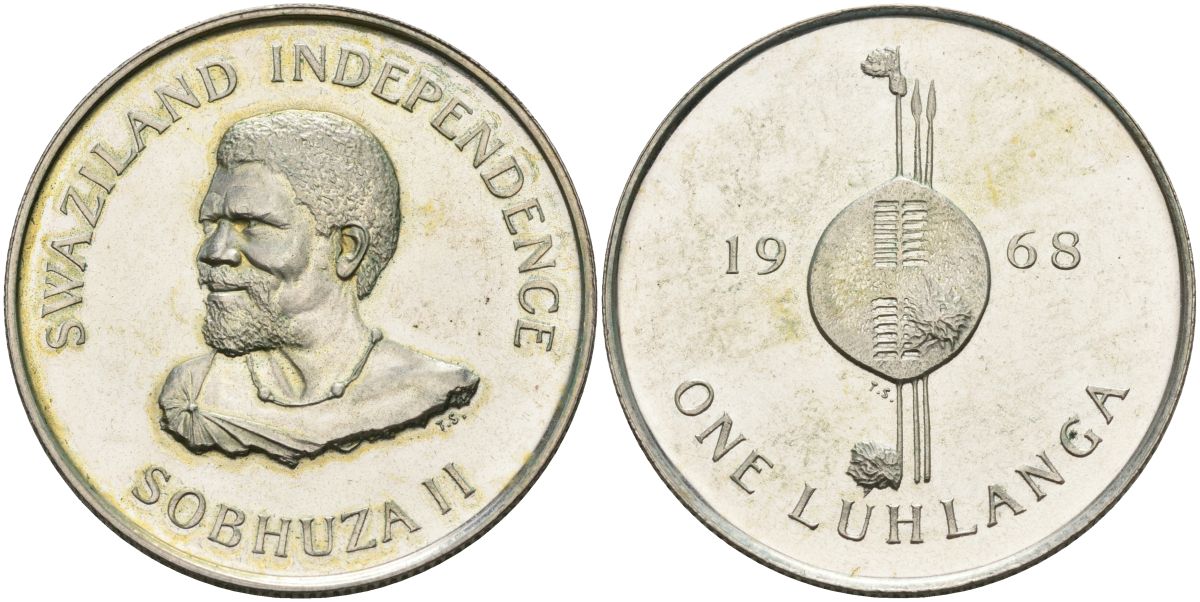 Свазиленд 1 луланга 1968 независимость, Собуза II KM 5 серебро PROOF 00-000-00