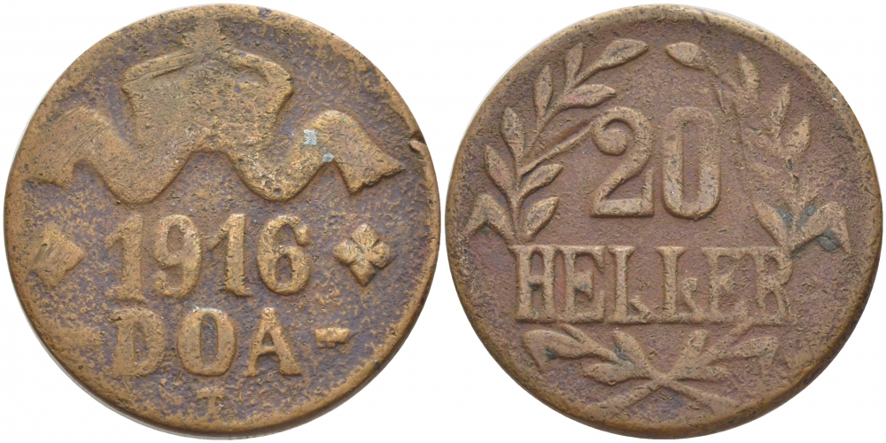 НЕМЕЦКАЯ ВОСТОЧНАЯ АФРИКА (ТАНЗАНИЯ) 20 ГЕЛЛЕРОВ 1916 T - OST-AFRICA, БОЛЬШАЯ КОРОНА, ПЕРВАЯ БУКВА L НЕ ПОЛНАЯ Jaeger 724 a, KM 15, WK 24 b медь 5010-545