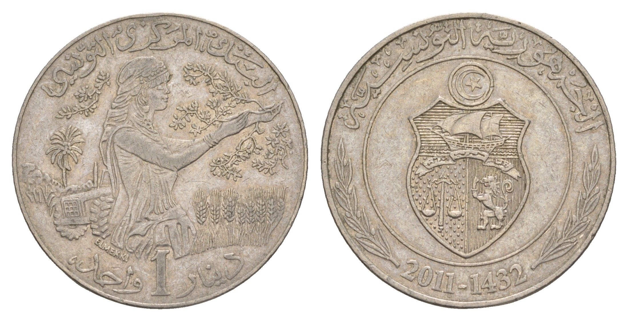 Тунис 1 динар 2011 AH 1432 KM 347 медно-никель 4656-826