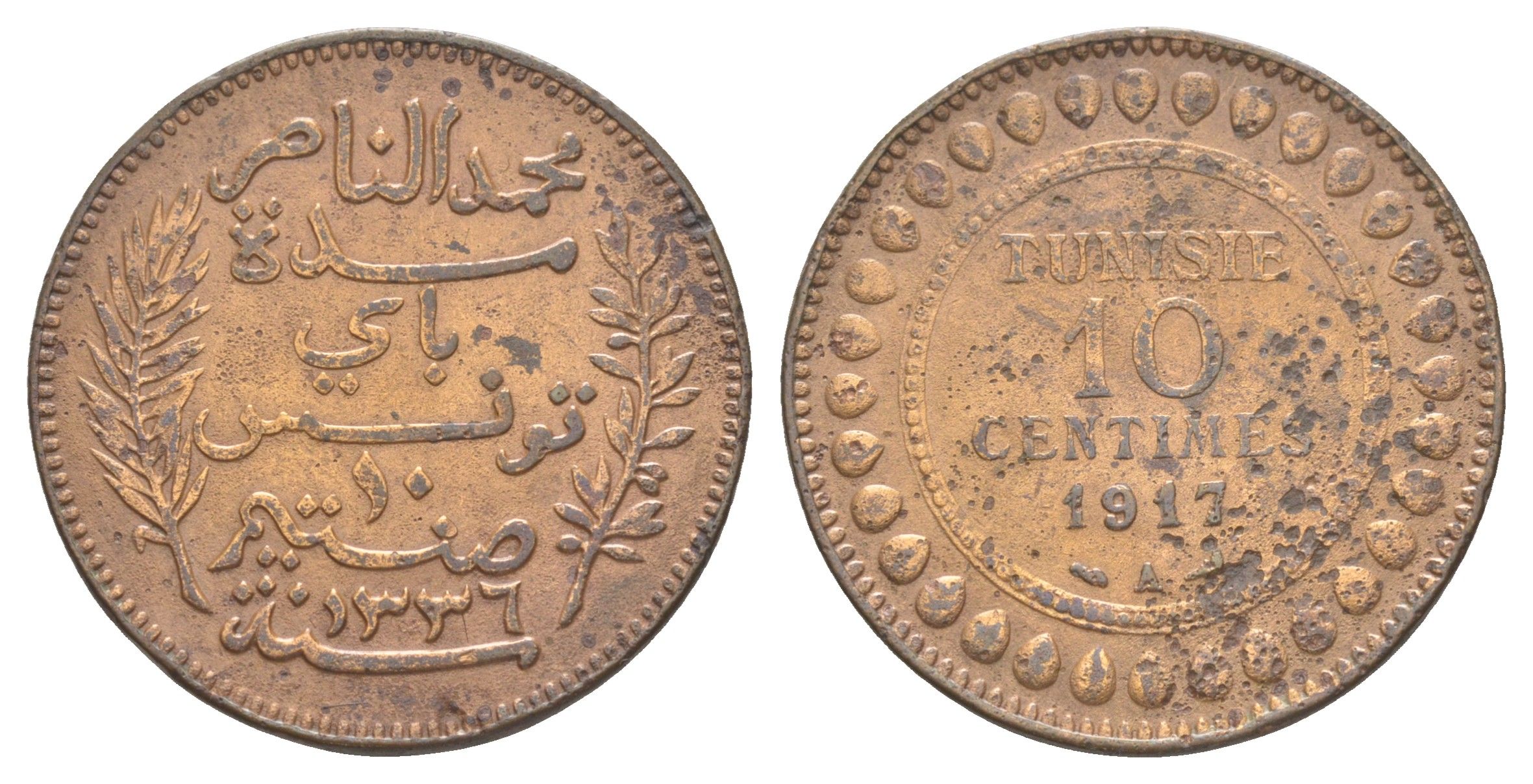 Тунис 10 сантимов 1917 A KM 236 бронза 4634-846