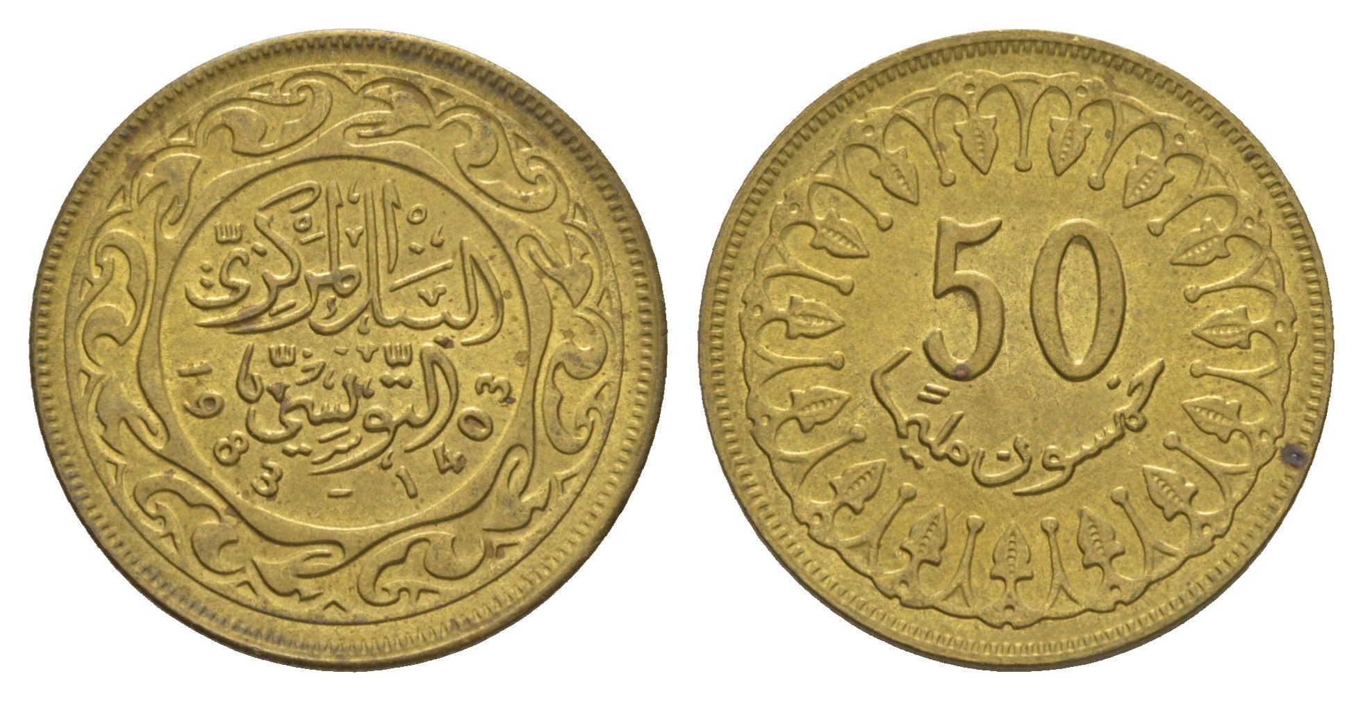 Тунис 50 миллимов 1983 AH 1403 KM 308 латунь UNC 4656-757