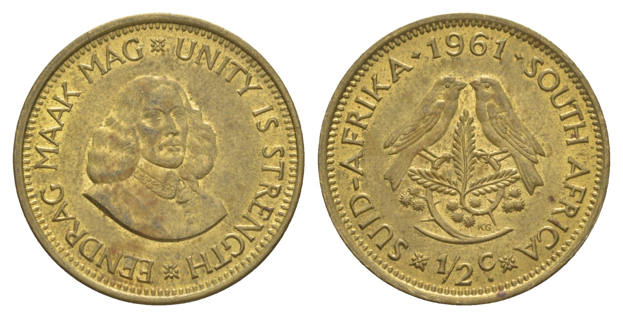 ЮАР 1/2 цента 1961 Ян ван Рибек KM 56 латунь aUNC 4603-334
