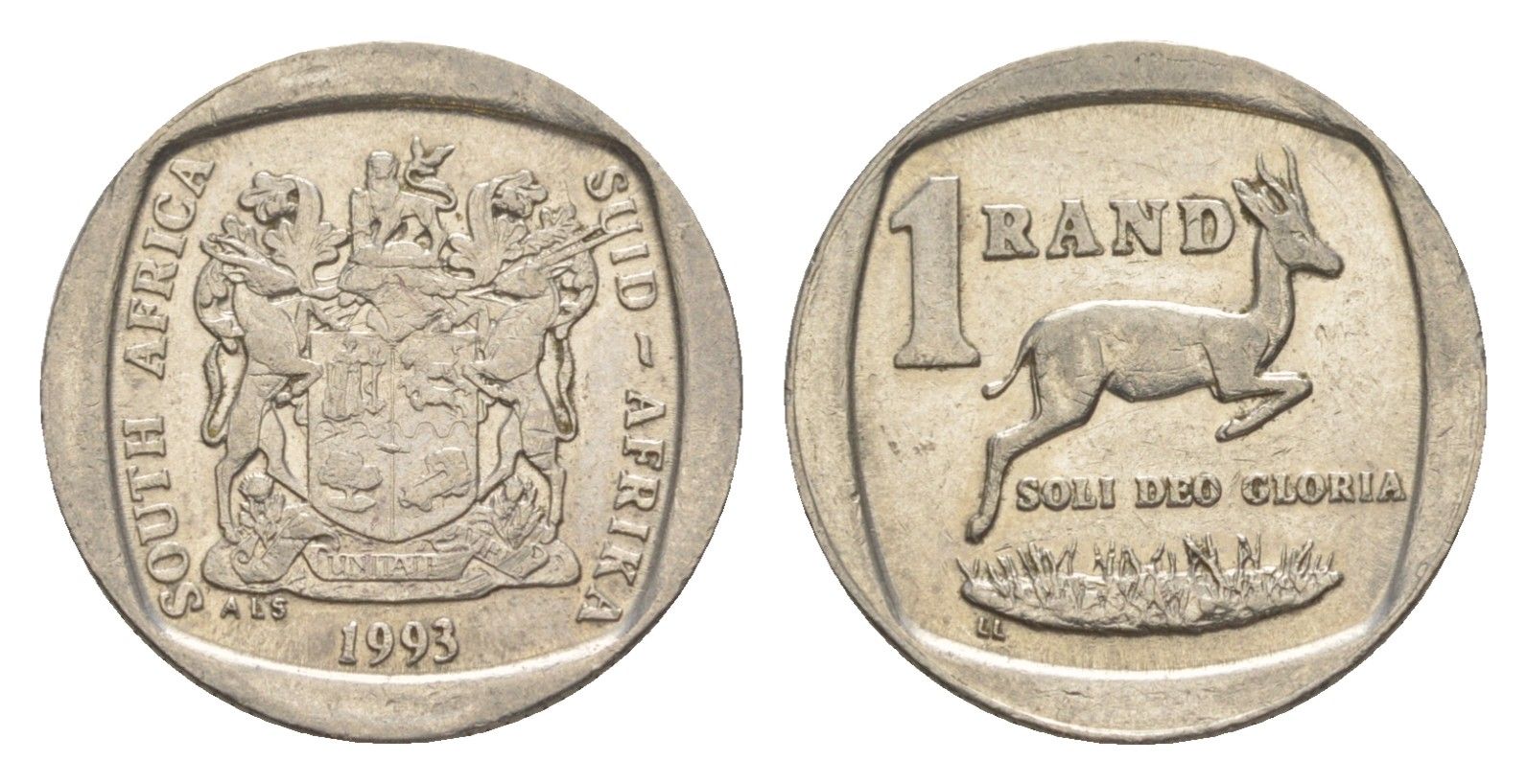ЮАР 1 ранд 1993 антилопа спрингбок, герб KM 138 медь плакированная никелем 4618-827