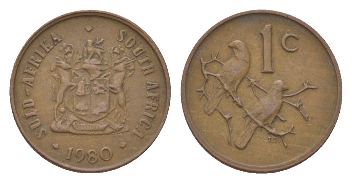 ЮАР 1 цент 1980 герб, капские воробьи KM 82 бронза 4627-159