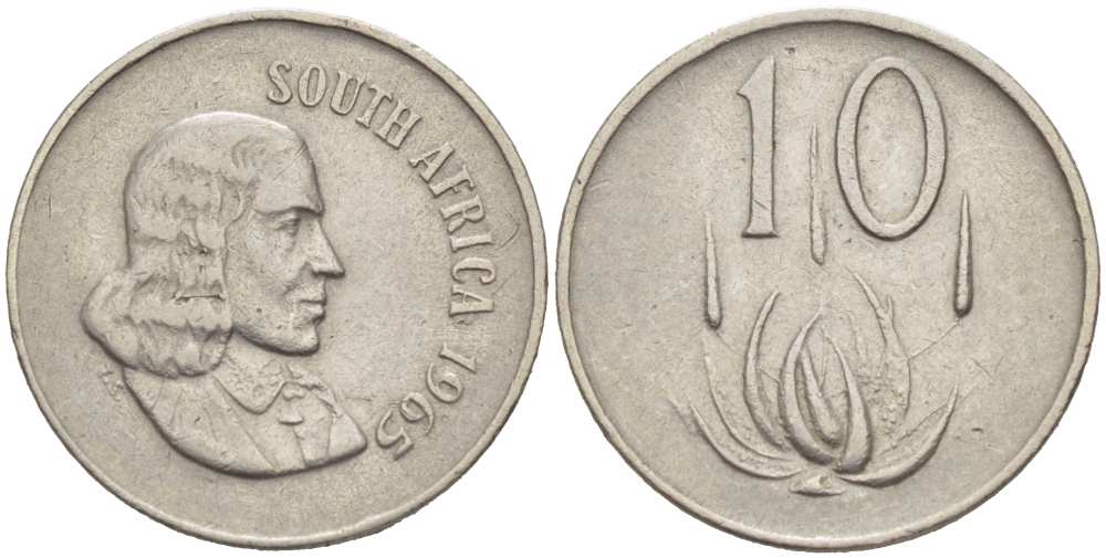ЮАР 10 ЦЕНТОВ 1965 SOUTH, ЯН ВАН РИБЕК (1619-1677), ГОЛАНДСКИЙ ИССЛЕДОВАТЕЛЬ , МОРЕПЛАВАТЕЛЬ, ОСНОВАТЕЛЬ Г. КЕЙПТАУНА, ЦВЕТОК АЛОЭ, АНГЛИЙСКАЯ ЛЕГЕНДА KM 68.1 никель UNC 67-354