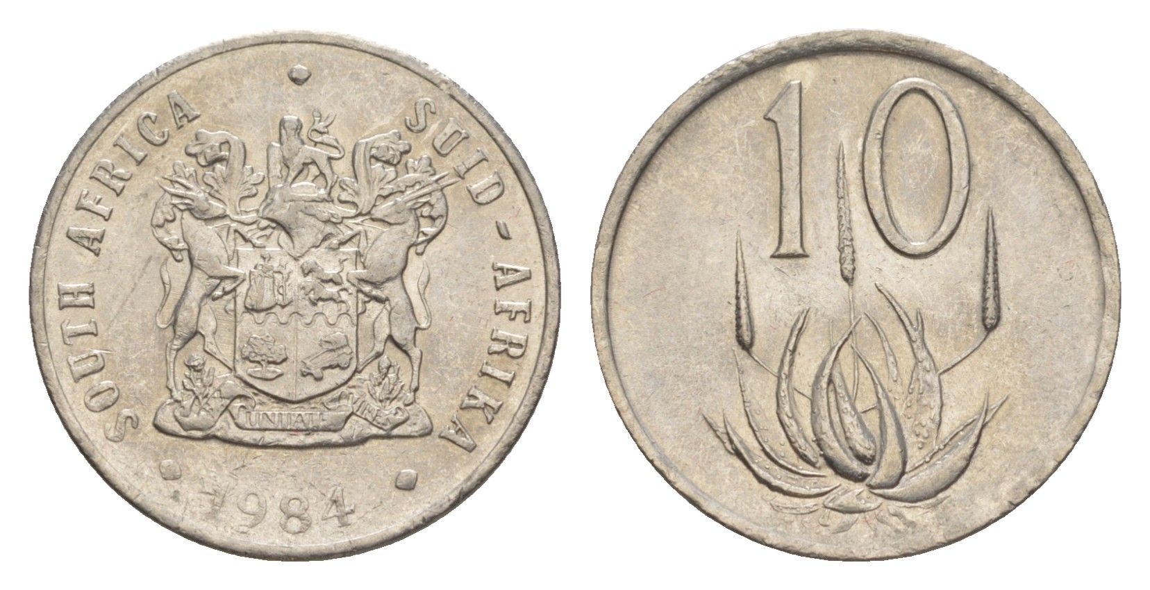 ЮАР 10 центов 1984 герб, цветок алоэ KM 85 никель UNC 4621-914
